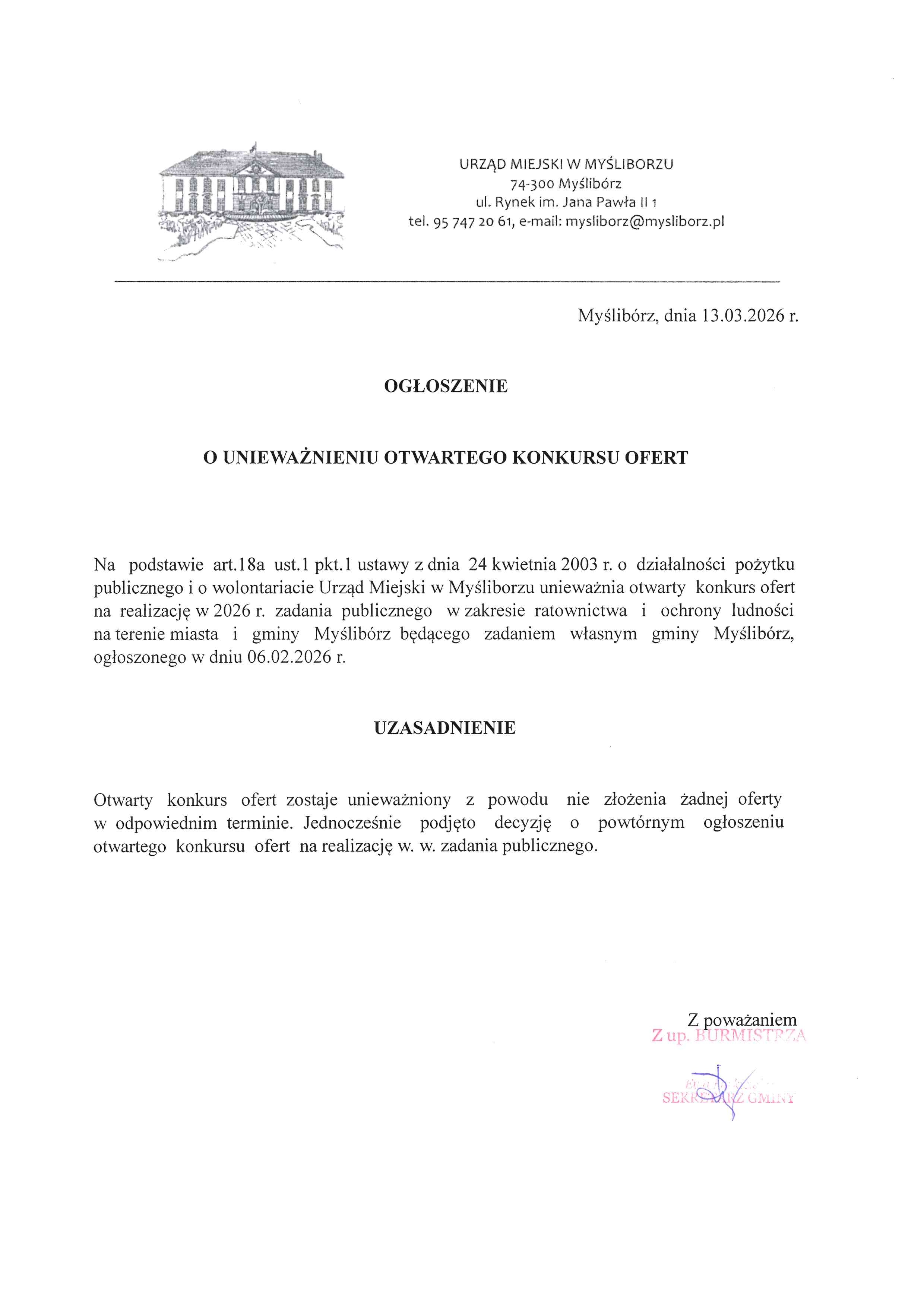 Ogłoszenie o unieważnieniu otwartego konkursu ofert